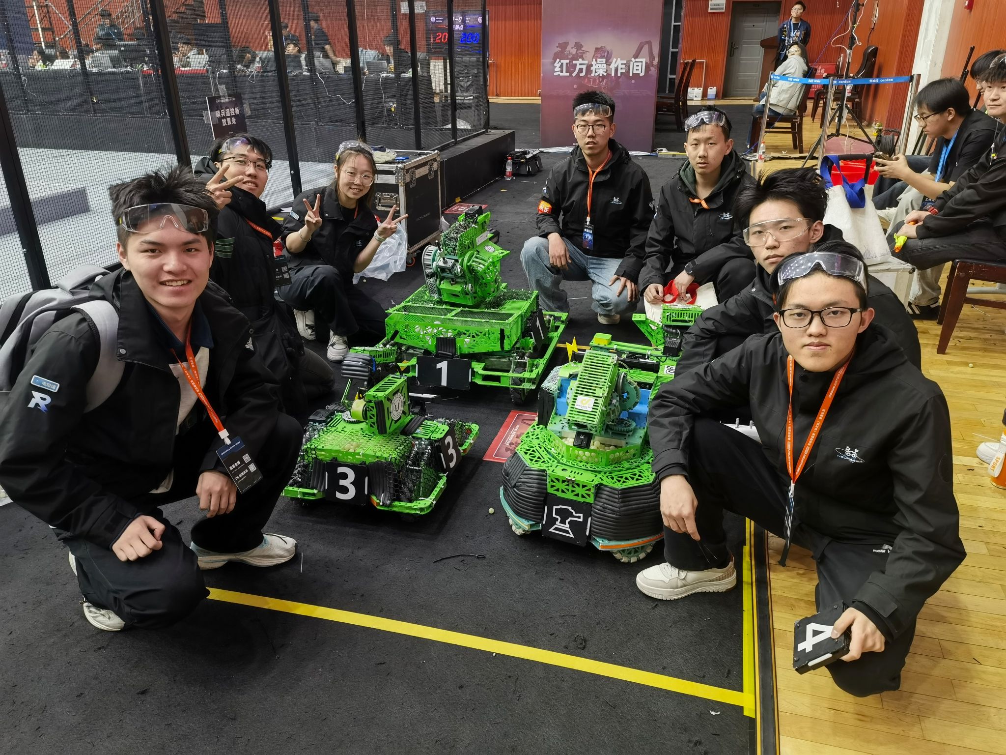 一直以来,学校高度重视科创教育与学科竞赛,成立“NewMaker智能实训基地”功能型党支部,积极探索“党建+科创”人才培养模式,充分发挥党支部思想引领和组织保障作用,引导队员们在技术研发中坚守初心、勇攀高峰。指导教师全程跟进并耐心指导队员优化机器人设计、完善战术方案,助力队员们突破技术瓶颈。战队全体师生攻坚克难、全力以赴。其中,机械组的队员们反复测量、切割、组装、调试,每一颗螺丝的紧固、每一处结构的优化,都凝聚着他们对极致的追求;电控组的队员们与传感器、电机、主控板相伴,反复校准参数、优化程序,只为让机器人的每一次操作都精准无误;视觉与算法组的队员们在屏幕闪烁的光影中,用代码构建机器人的“眼睛”与“大脑”,在无数次仿真与实测中打磨精度。深夜的实验室里,灯光常亮不灭,队员们克服疲惫、互帮互助,遇到技术难题时一起研讨、反复试验,哪怕一次次失败也绝不放弃,用坚持与热爱浇灌着成功的种子。