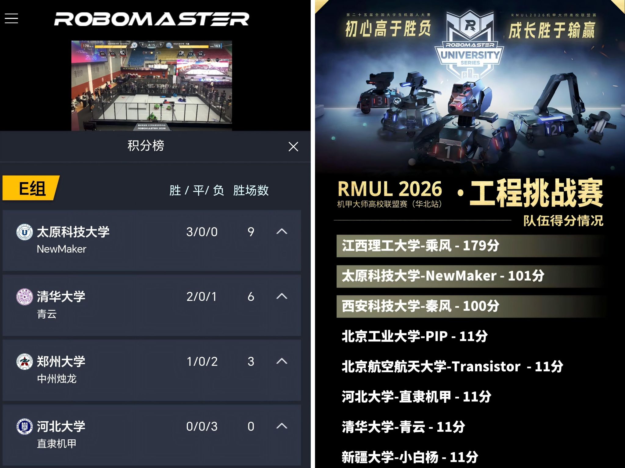 4月2日—5日,全国大学生机器人大赛ROBOMASTER机甲大师高校联盟赛(华北站)在内蒙古科技大学圆满落幕。beat365官网NewMaker智能实训基地机器人战队凭借扎实的技术积累、默契的团队配合和顽强的拼搏精神,一路过关斩将,最终在3V3对抗赛中获得冠军,工程挑战赛获得一等奖,充分体现了beat365官网学子在科技创新与工程实践领域的硬核实力。