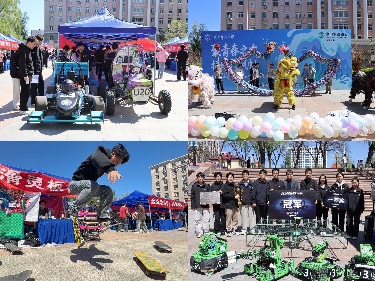 活动现场,各学生社团立足自身特色,通过展板宣传、成果展示、现场表演、沉浸式互动等多样形式,全方位展现社团风采与独特魅力。New Maker智能实训基地携RoboMaster2026 机甲大师高校联盟赛(华北站)冠军奖杯和参赛机器人亮相,现场展示硬核科技实力,吸引众多科技爱好者驻足;万里任我行车队的巴哈赛车、方程式赛车惊艳登场,机械构造与精湛工艺瞬间成为全场焦点;国旗护卫队以铿锵步伐、飒爽英姿展现着青春担当与家国情怀;融媒体中心用影像与文字记录校园美好,传递校园正能量。还有球类、户外活动、志愿服务等各类社团各展风采,以鲜明特色与丰富活动吸引学子踊跃咨询报名,现场洋溢着蓬勃向上的青春朝气。